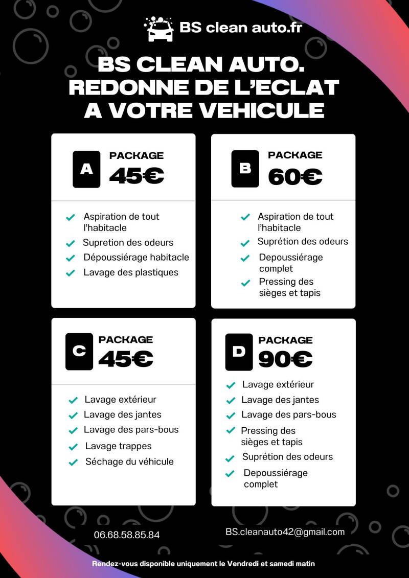 Découvrez nos services de nettoyage auto chez BS Clean Auto. Nous proposons des solutions professionnelles pour l'entretien de votre véhicule, avec un engagement de qualité et un service impeccable. Attirez des clients, présentez votre travail et profitez de notre expertise pour un nettoyage auto irréprochable.